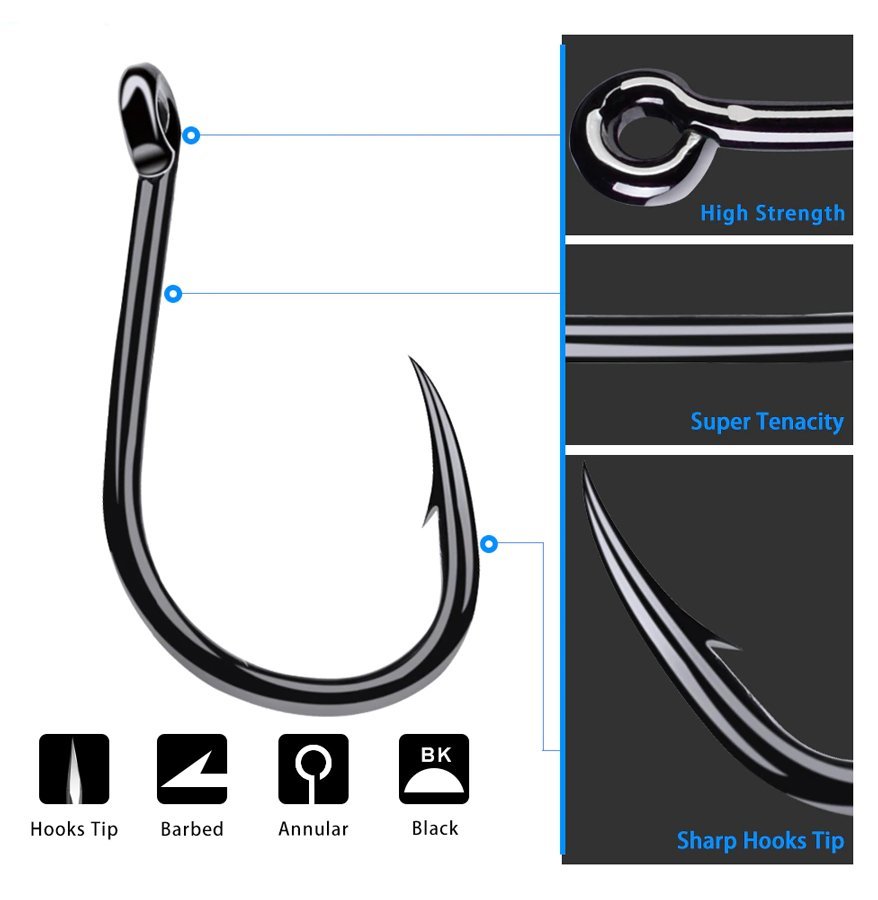 Σετ αγκίστρια ψαρέματος με θήκη για την αποθήκευση τους. Είναι κατασκευασμένα από ανθεκτικό και υψηλής ποιότητας carbon steel που δεν σκουριάζει.