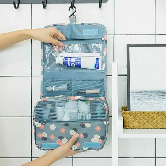 Γυναικείο νεσεσέρ, ιδανικό για ταξίδια και εκδρομές. Διαθέτει πολλαπλές εσωτερικές θέσεις για την τοποθέτηση προϊόντων περιποίησης και καλλυντικών. Είναι κατασκευασμένο από αδιάβροχο υλικό και διαθέτει βολικό γάντζο κρεμάσματος.