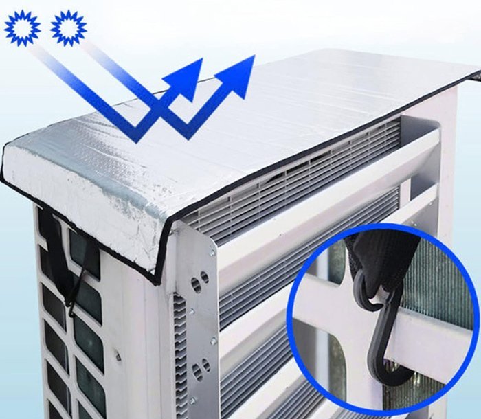 Κάλυμμα για την προστασία της εξωτερικής μονάδας κλιματιστικού από τις επιβλαβείς ακτίνες του ήλιου. Τοποθετείται πάρα πολύ εύκολα με γάντζους (συμπεριλαμβάνονται).