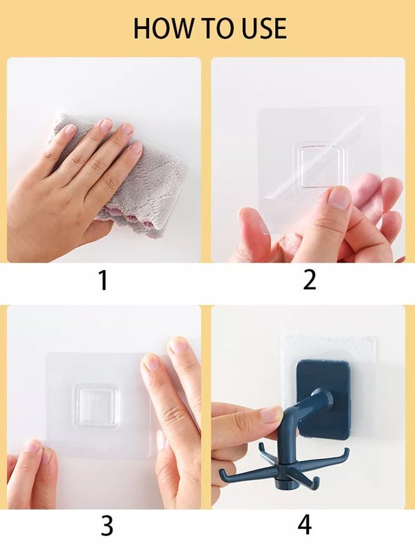 Τοποθετείται επιτοίχια με αυτοκόλλητο κλιπ (συμπεριλαμβάνεται) το οποίο αποσπάται από την κρεμάστρα, διευκολύνοντας τον καθαρισμό της.