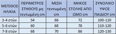 Μεγέθη 3- 8 ετών ή 100-140 ύψος