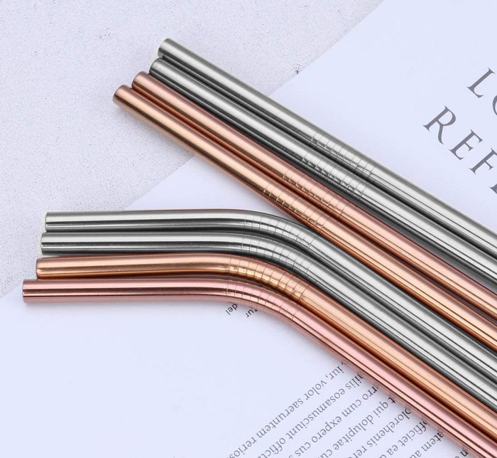 Σετ επαναχρησιμοποιούμενα καλαμάκια κατασκευασμένα από υψηλής ποιότητας ανοξείδωτο ατσάλι.