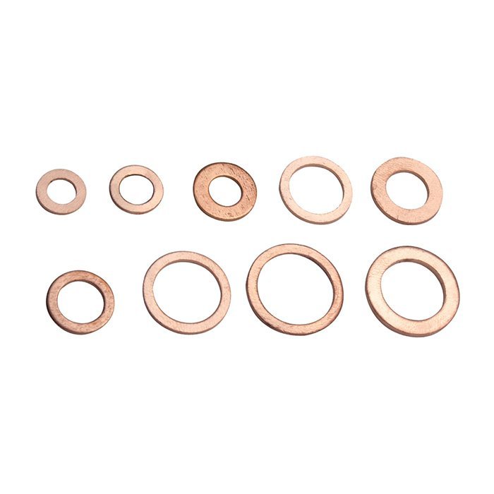 Σετ που αποτελείται από 200 χάλκινες ροδέλες σε διάφορα μεγέθη. Όλα τα εξαρτήματα του σετ είναι τοποθετημένα μέσα σε διάφανη πλαστική θήκη για την εύκολη τακτοποίηση και μεταφορά τους.