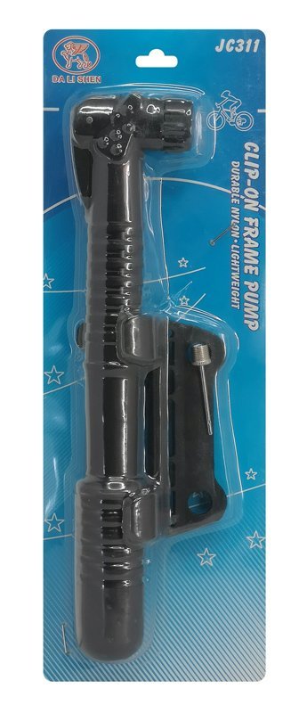 Μίνι τρόμπα χειρός με 1 ακροφύσιο για το φούσκωμα των ελαστικών του ποδηλάτου σας. Το σώμα της είναι κατασκευασμένο από ανθεκτικό υλικό που εξασφαλίζει αξιόπιστη και μακροχρόνια χρήση. Στη συσκευασία συμπεριλαμβάνεται βάση για την τοποθέτηση της τρόμπας στο ποδήλατο.