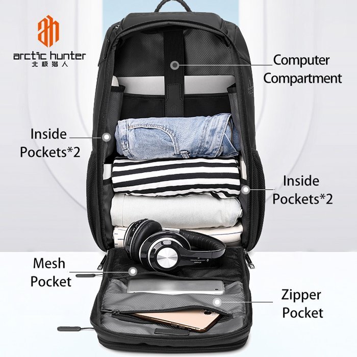 ARCTIC HUNTER τσάντα πλάτης B00461 με θήκη laptop 15.6", 25L, μαύρη