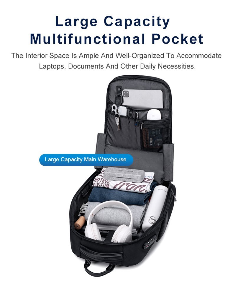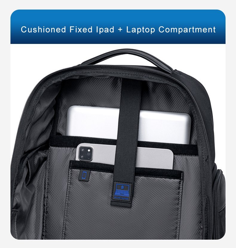 ARCTIC HUNTER τσάντα πλάτης B00682 με θήκη laptop 15.6", USB, λουκέτο TSA, 23.5L, μαύρη