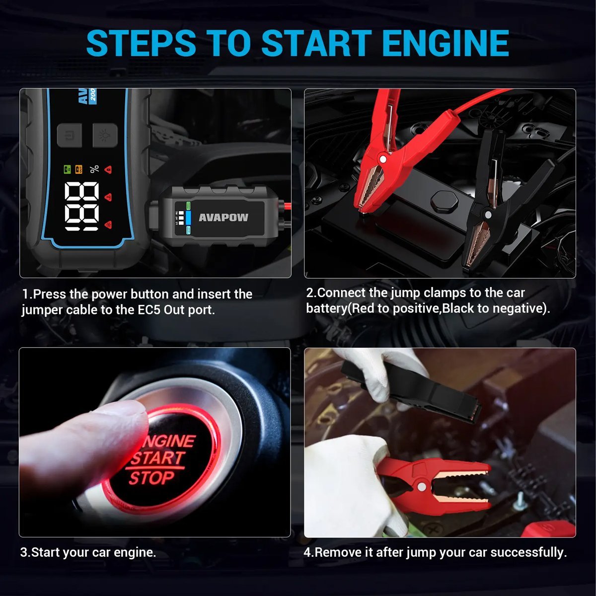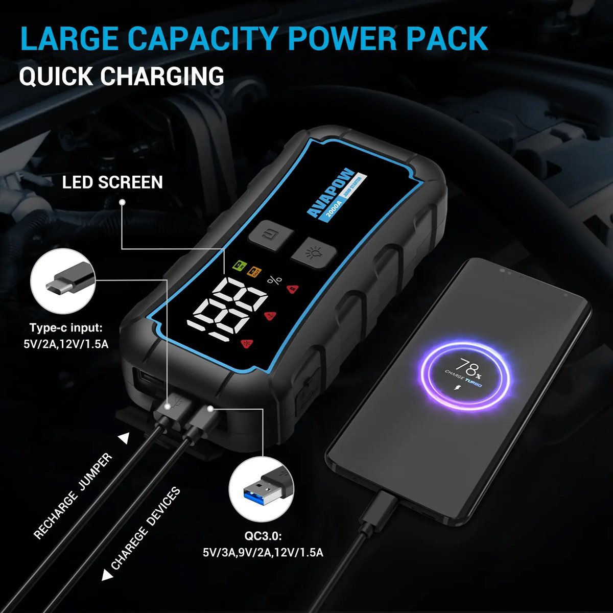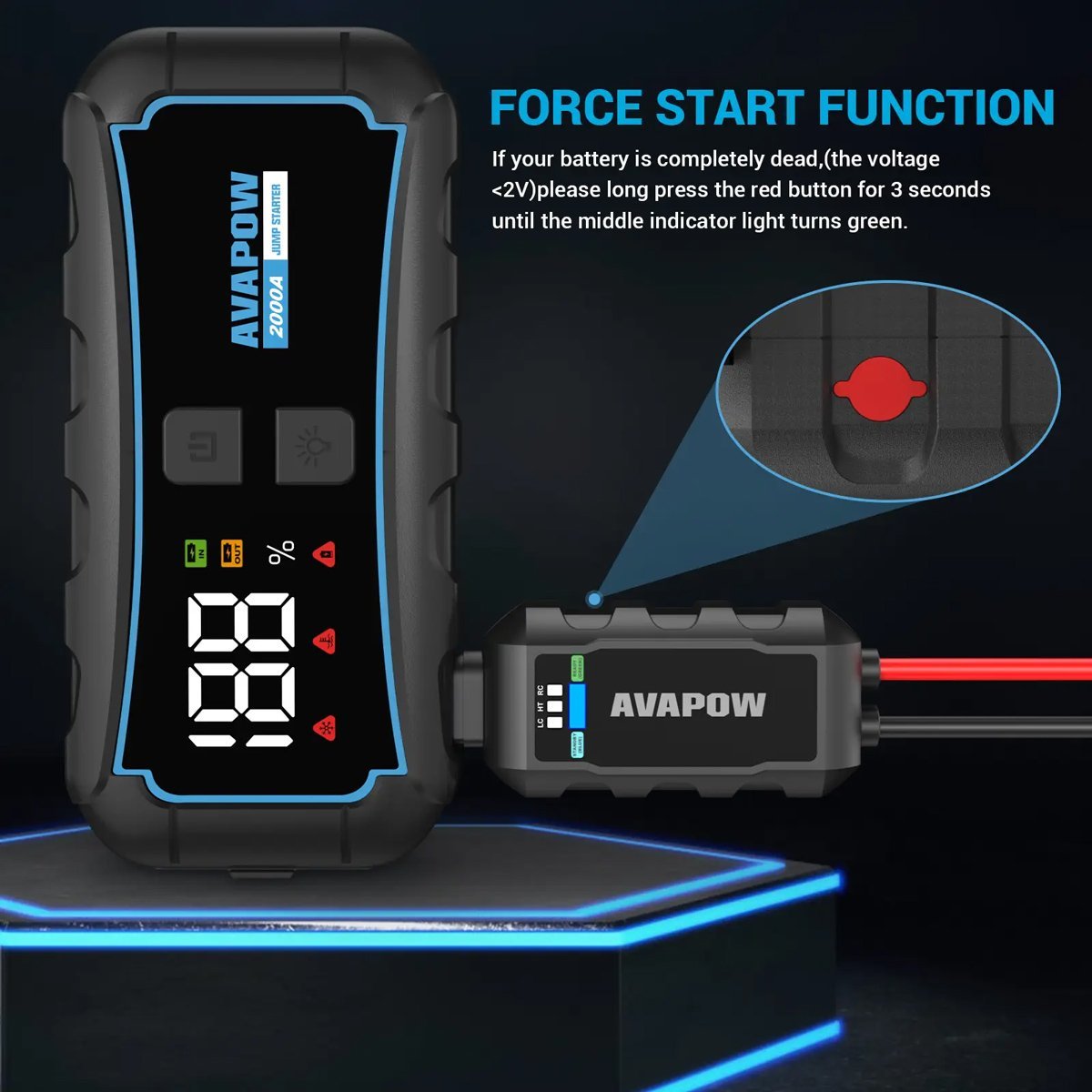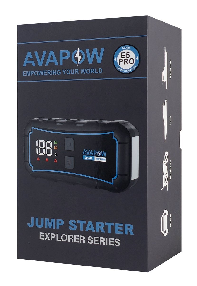 AVAPOW εκκινητής μπαταρίας αυτοκινήτου E5 Pro με φακό, 12V/2000A, 12000mAh