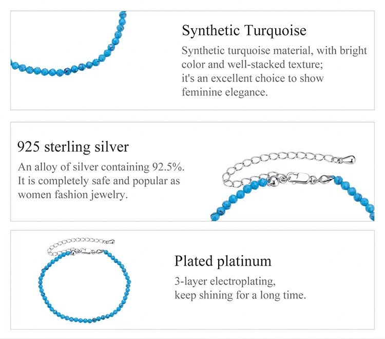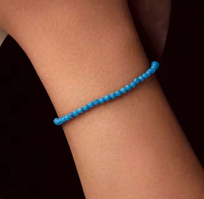 Κομψό βραχιόλι, διακοσμημένο με συνθετικές τουρκουάζ πέτρες, που προσφέρουν μοναδική λάμψη στο κόσμημα και προσδίδουν στυλ σε κάθε εμφάνιση.