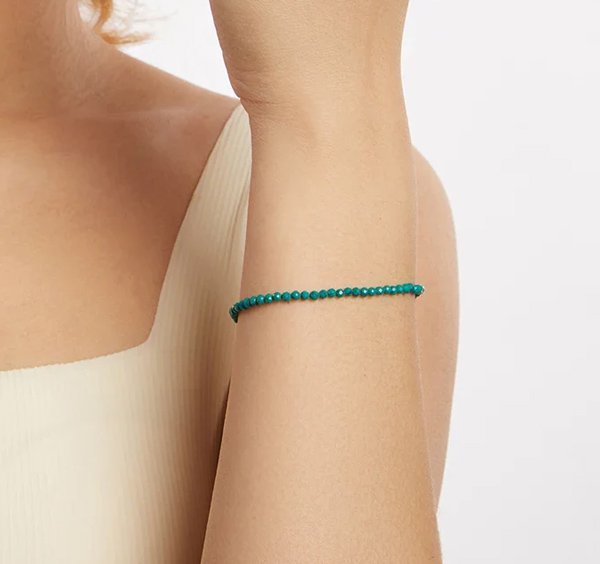 Κομψό βραχιόλι, διακοσμημένο με συνθετικές τουρκουάζ χάντρες, που προσφέρουν μοναδική λάμψη στο κόσμημα και προσδίδουν στυλ σε κάθε εμφάνιση.