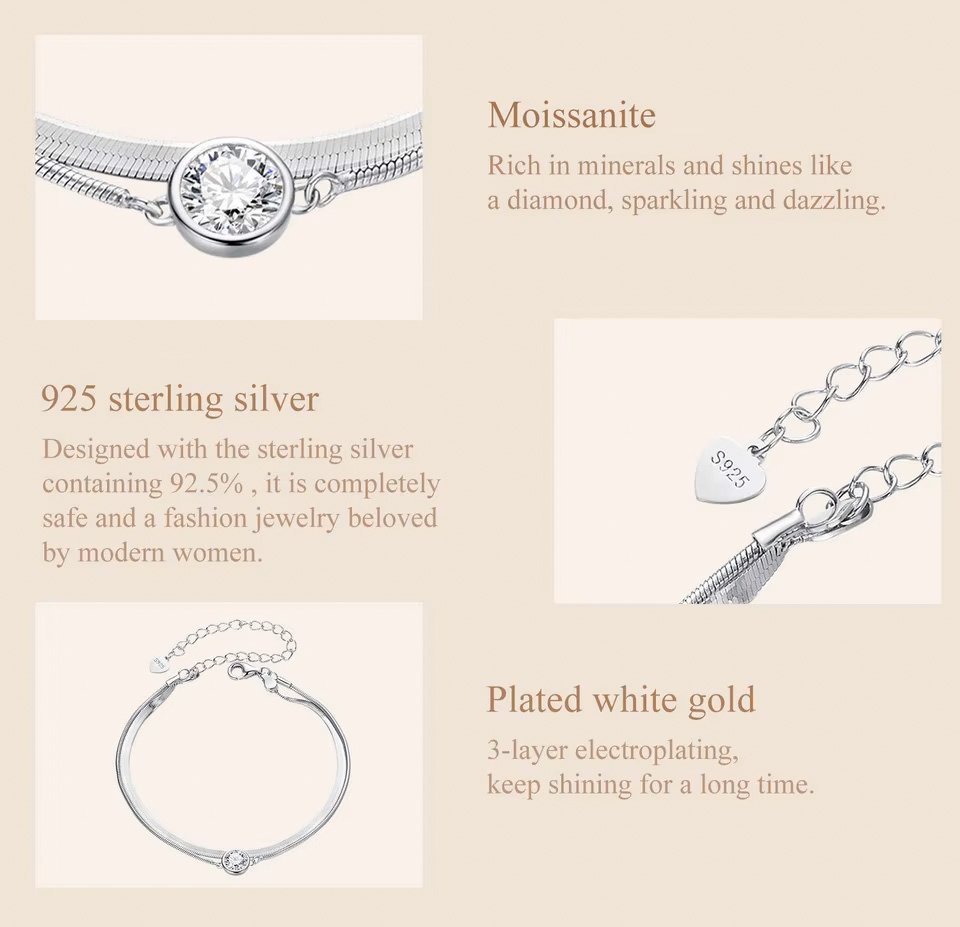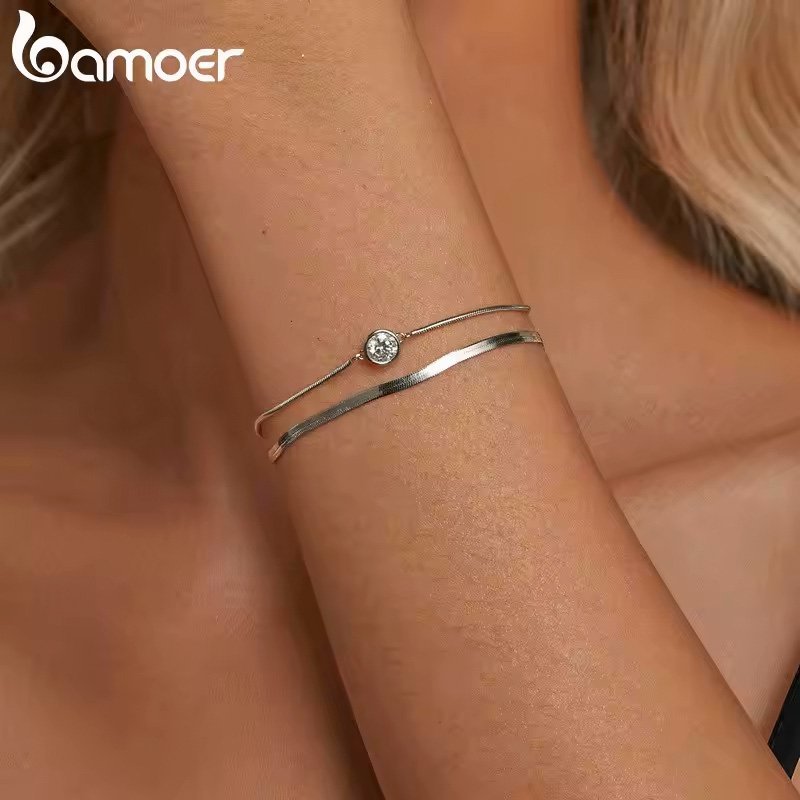 BAMOER βραχιόλι MSB022 με μοϊσσανίτη, ασήμι 925, ασημί