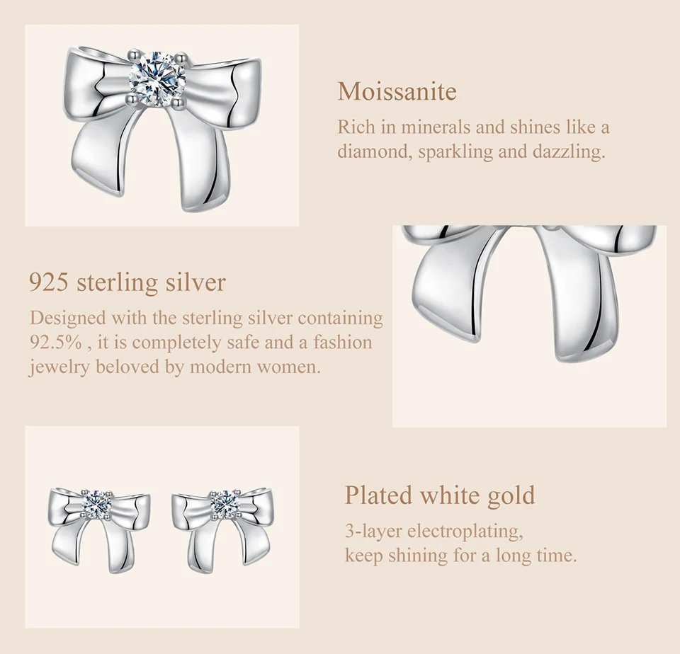Μοντέρνα σκουλαρίκια καρφωτά Bamoer, κατασκευασμένα από ασήμι 925 και διακοσμημένα με μοϊσσανίτη.