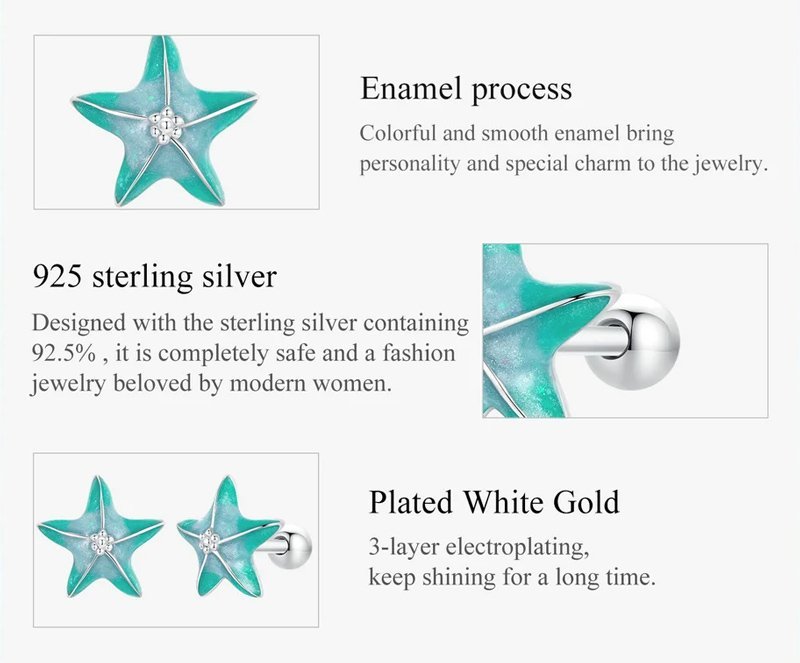 BAMOER σκουλαρίκια καρφωτά SCE1747 σε σχήμα κοχύλι, ασήμι 925, βεραμάν