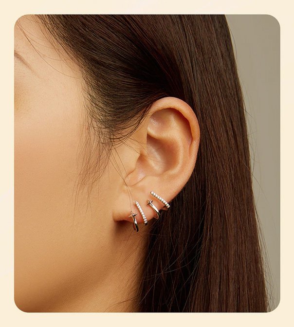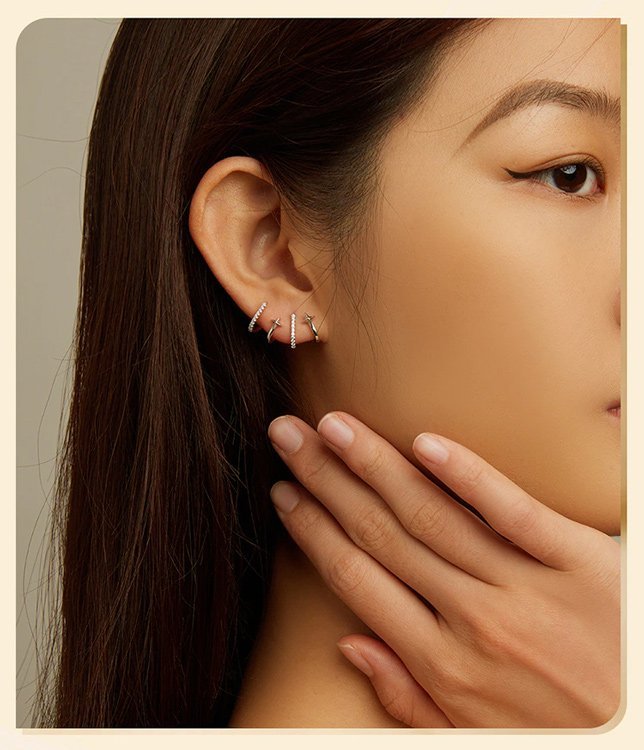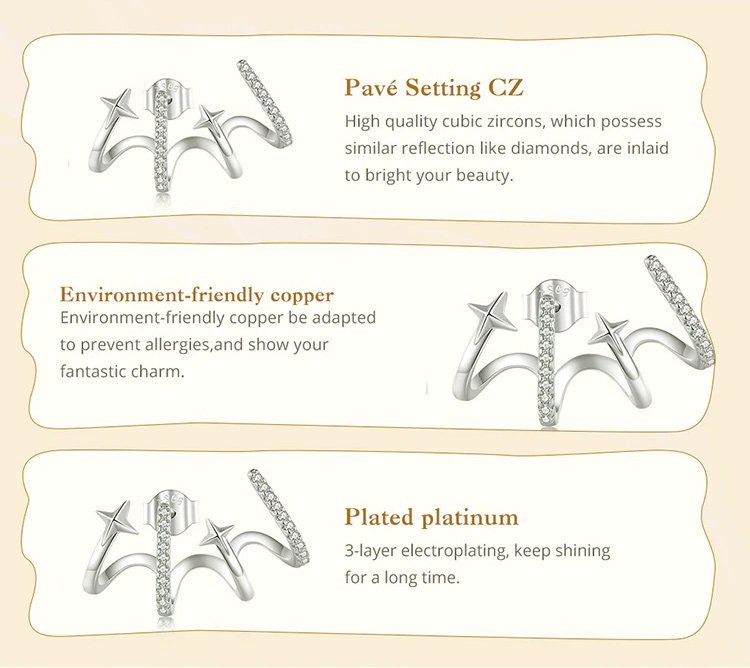 Ιδιαίτερα σκουλαρίκια, επιπλατινωμένα, διακοσμημένα με κυβική ζιρκόνια λευκού χρώματος, τα οποία στερεώνονται στον λοβό του αυτιού και επεκτείνονται προς τα πάνω, δημιουργώντας ένα εντυπωσιακό εφέ.