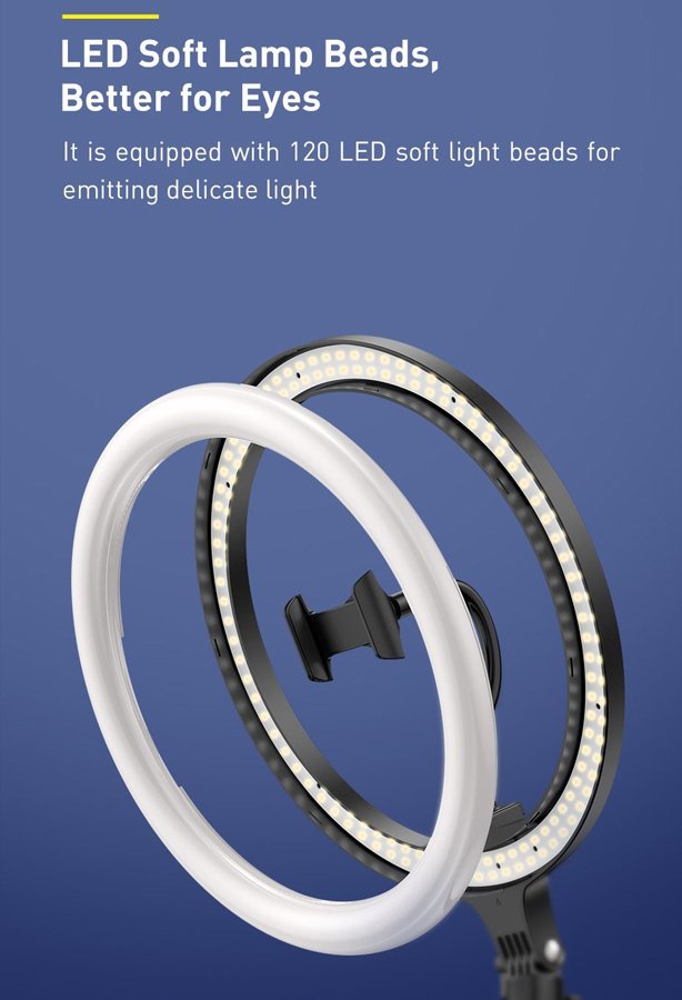 BASEUS φωτιστικό δαχτυλίδι LED CRZB12-B01, 12", χωρίς τρίποδα, μαύρο