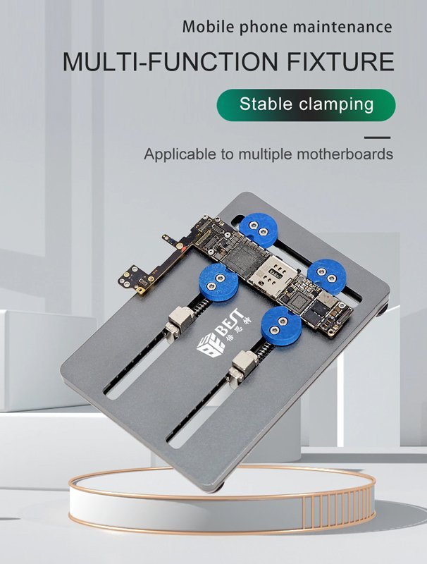 Βάση επισκευής motherboard κινητών από την Best. Συγκρατεί σταθερές τις motherboard, ενώ στο κάτω μέρος τις διαθέτει αντιολισθητικά πόδια για να μην μετακινείται κατά την διάρκεια των επισκευών.