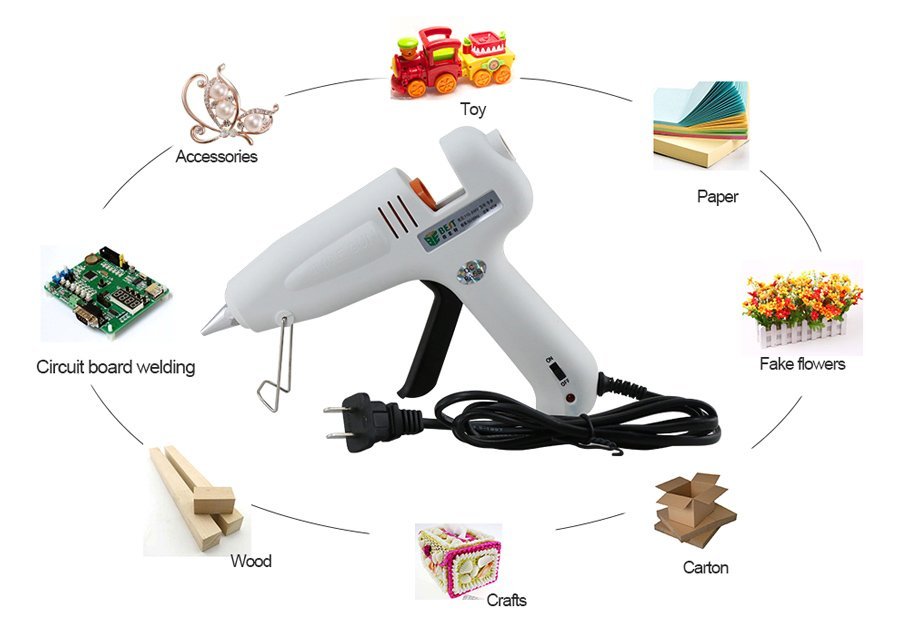 Πιστόλι θερμικής σιλικόνης με διακόπτη λειτουργίας. Διαθέτει αναδιπλώμενη βάση για εύκολή τοποθέτηση του πιστολιού και ενδεικτική λυχνία ισχύος. Κατάλληλο για ράβδους σιλικόνης 10.5-11.5mm