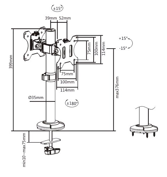 Swivel Range: +15°~-15°