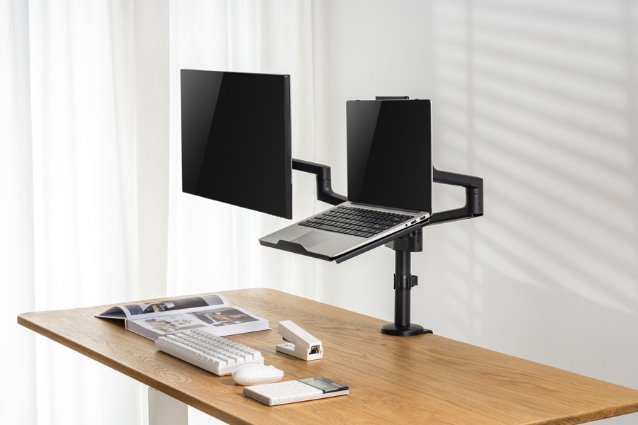 Μεταλλική βάση για laptop από 12" έως 17" με βάρος έως 5kg. Τοποθετείται εύκολα σε βάσεις γραφείου για οθόνες προδιαγραφών VESA 75×75.