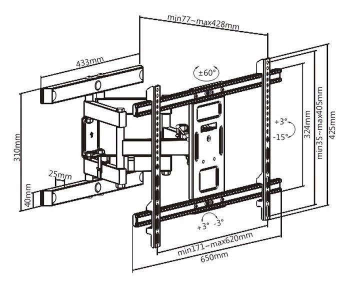 BRATECK επιτοίχια βάση τηλεόρασης LPA61-466, 37-80", έως 60kg, full motion