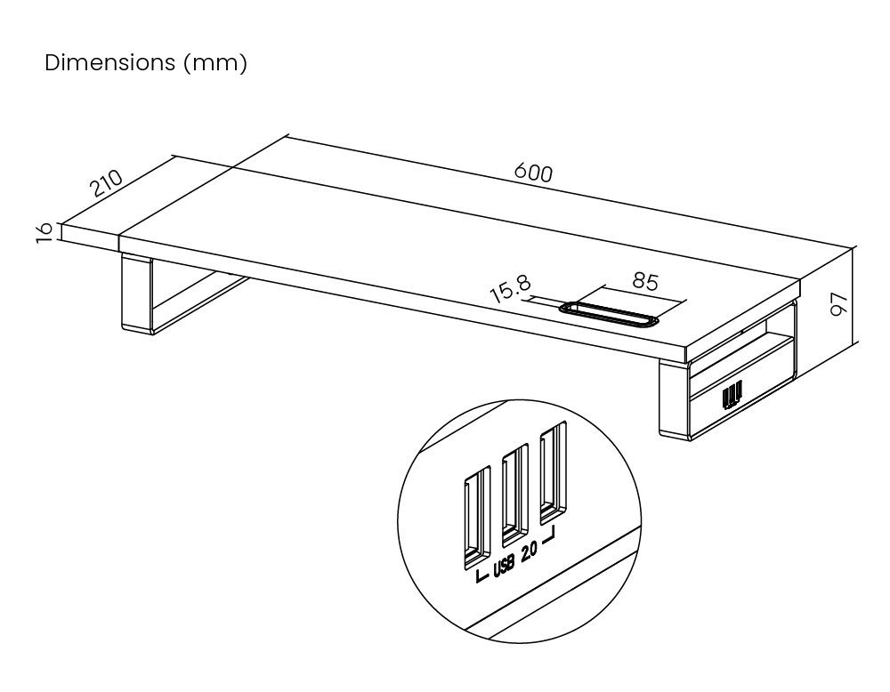 -διαστάσεις: 600 x 210 x 97mm