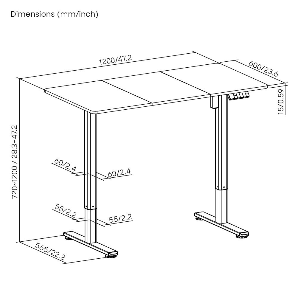 -εύρος ύψους γραφείου: 720~1200mm