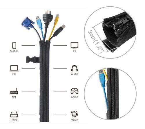 Εύκαμπτο προστατευτικό κάλυμμα με φερμουάρ και κούμπωμα, ιδανικό για την τακτοποίηση και διαχείριση καλωδίων. Τοποθετείται εύκολα και μπορεί να κοπεί στο επιθυμητό μήκος.