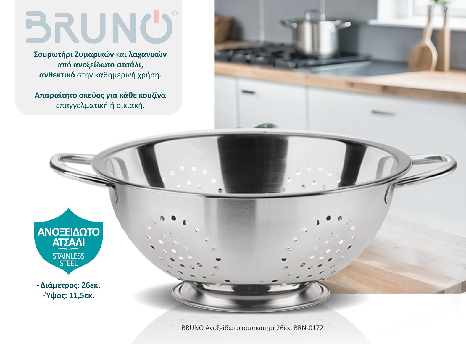 BRUNO ανοξείδωτο σουρωτήρι BRN-0172, 26εκ.
