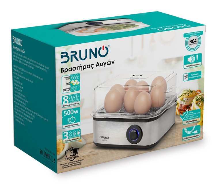 BRUNO βραστήρας αυγών 8 θέσεων BRN-0156, 500W, ανοξείδωτος