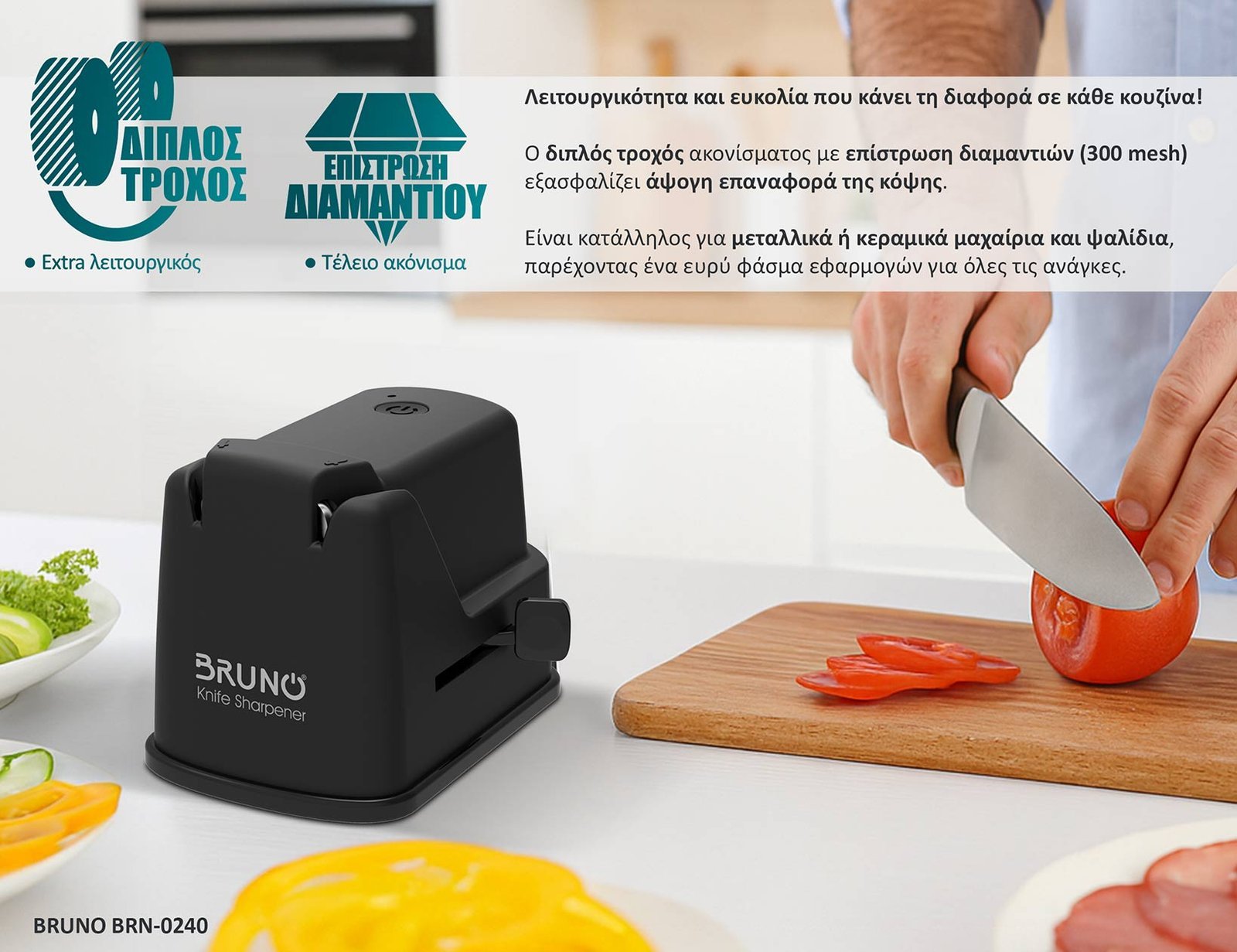 BRUNO επαναφορτιζόμενο ακονιστήρι BRN-0240 με επίστρωση από διαμάντι & διπλή πέτρα ακονίσματος
