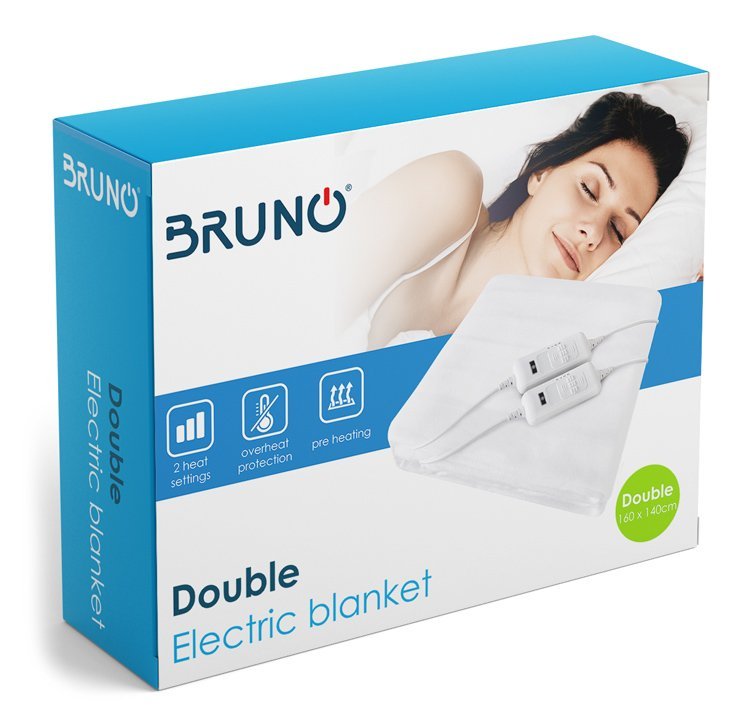 Ηλεκτρική κουβέρτα εξαιρετικής απόδοσης της BRUNO με ισχύ 2x 60w και 2 επίπεδα θερμοκρασίας. Εξοπλίζεται με εύχρηστα, αποσπώμενα χειριστήρια με δυνατότητα επιλογής διαφορετικού επιπέδου Θερμοκρασίας σε κάθε πλευρά και διαθέτει προστασία από την υπερθέρμανση.