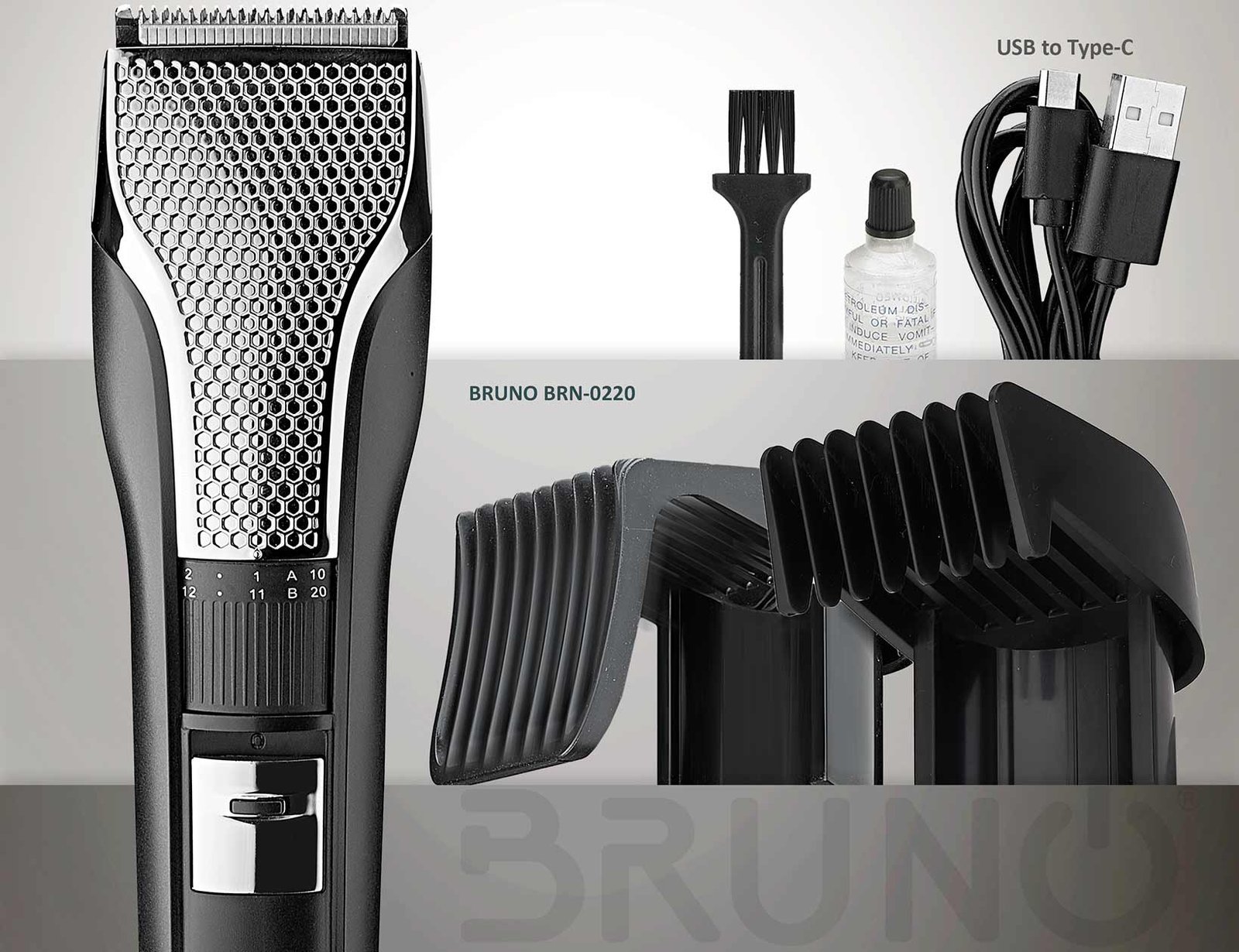 BRUNO κουρευτική μηχανή BRN-0220, επαναφορτιζόμενη, μαύρη