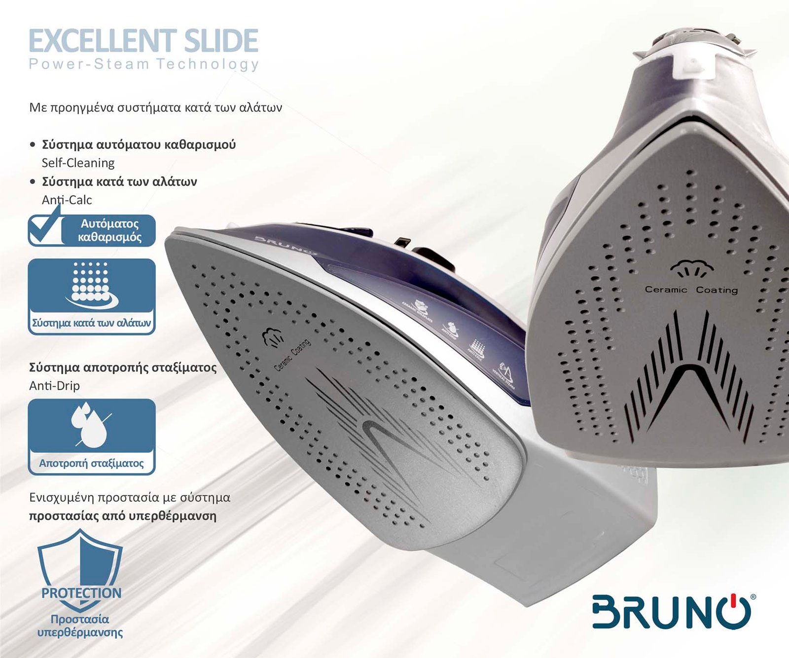BRUNO σίδερο ατμού Excellent Slide BRN-0145 με κεραμική πλάκα, 2400W