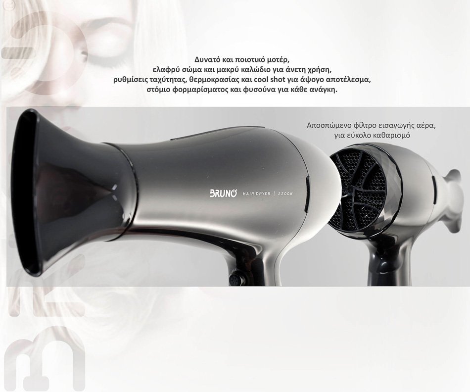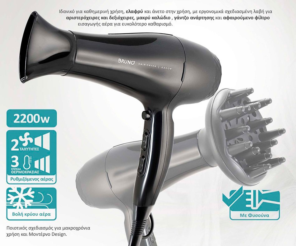 BRUNO σεσουάρ μαλλιών BRN-0154, 2200W, με φυσούνα, μαύρο