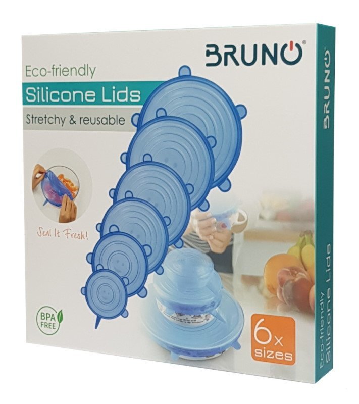 BRUNO σετ σιλικονούχων καπακιών για δοχεία τροφίμων BRN-0044, 6τμχ, μπλε
