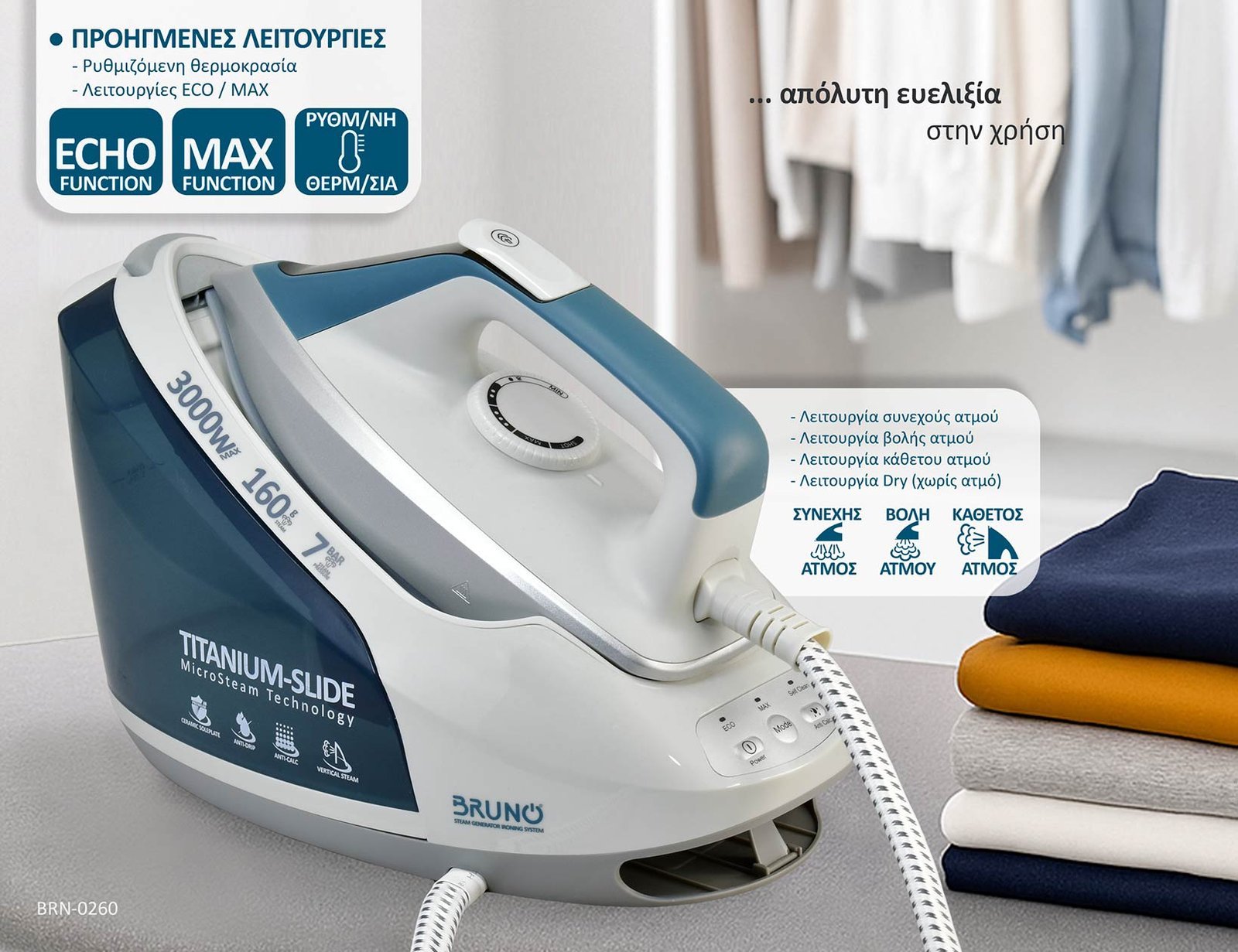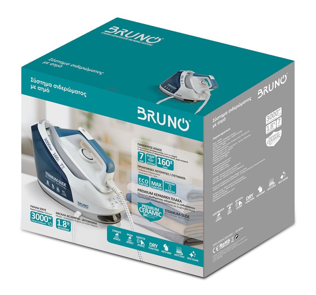 BRUNO σύστημα σιδερώματος BRN-0260, πίεσης 7bar, με δοχείο 1.8L, 3000W