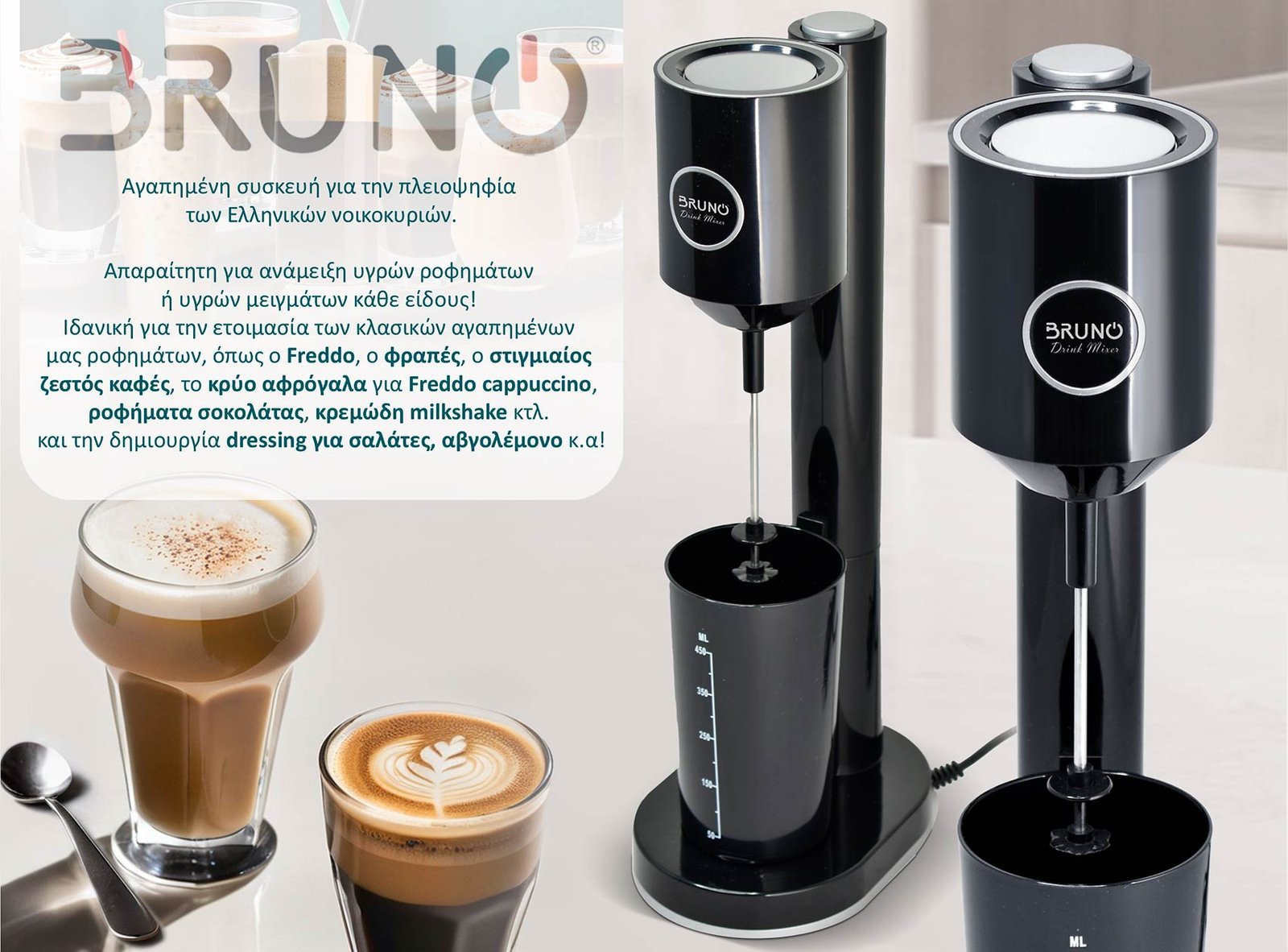 Ιδανική για την ετοιμασία των κλασικών αγαπημένων μας ροφημάτων, όπως ο Freddo, ο φραπές, ο στιγμιαίος ζεστός καφές, το κρύο αφρόγαλα για Freddo cappuccino, ροφήματα σοκολάτας, κρεμώδη milkshake κτλ. και την δημιουργία dressing για σαλάτες, αβγολέμονο κ.α.!