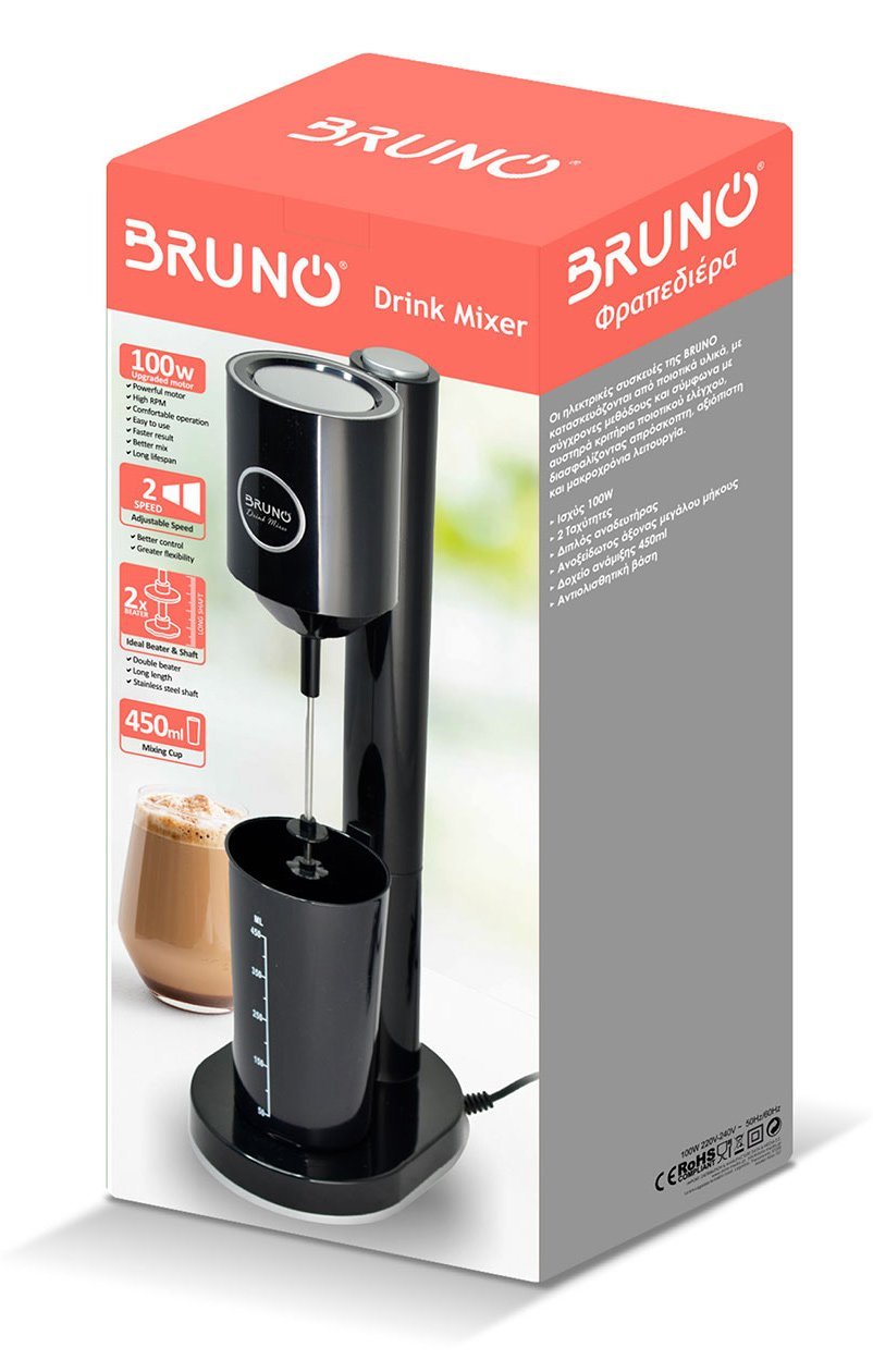 BRUNO φραπεδιέρα επιτραπέζια BRN-0183 100W με δοχείο 450ml, μαύρη