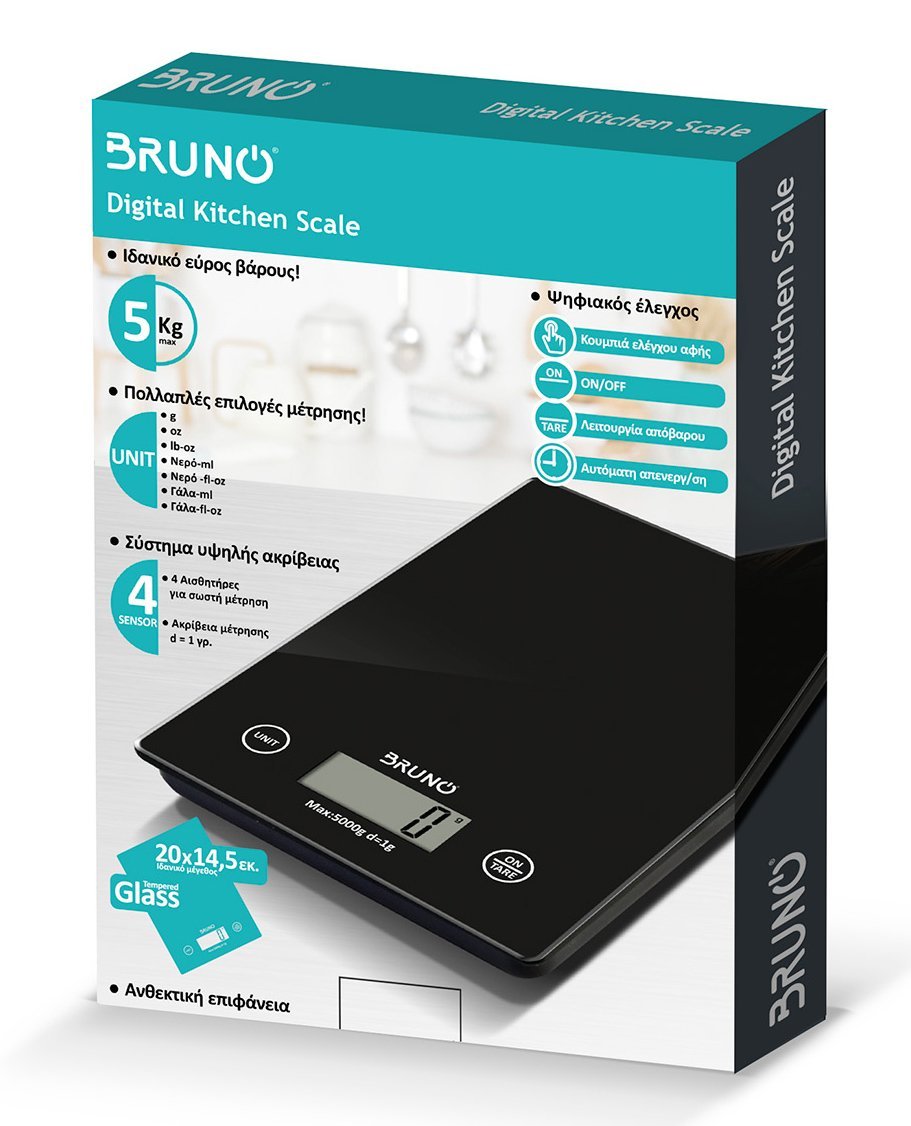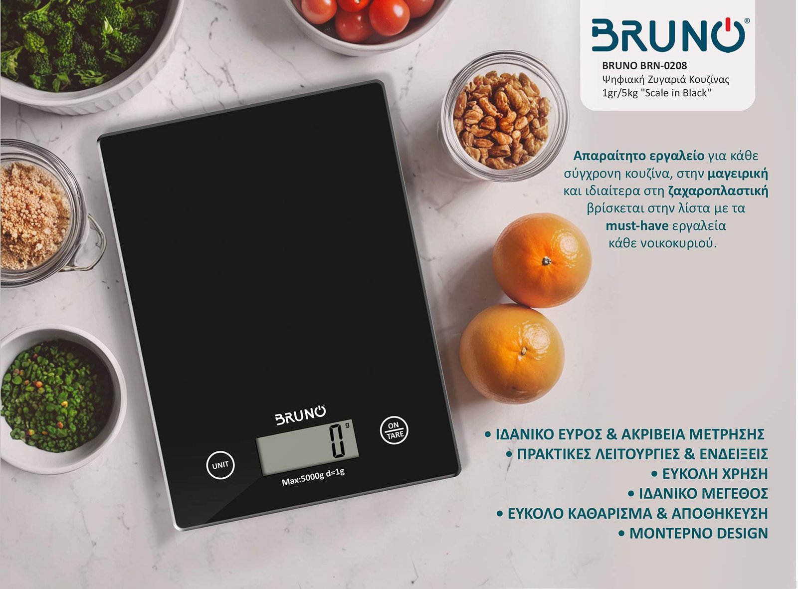 BRUNO ψηφιακή ζυγαριά κουζίνας BRN-0208, 1gr/5kg, Scale in Black