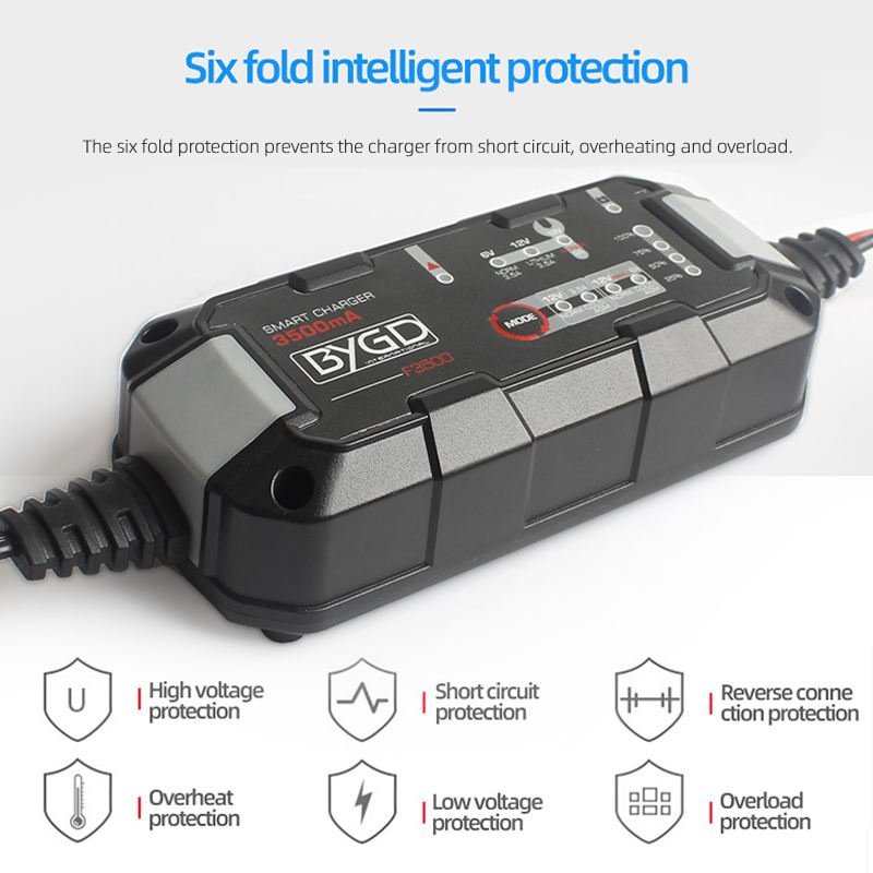 Ο BYGD F3500 είναι ένας αξιόπιστος και έξυπνος φορτιστής–συντηρητής μπαταρίας, ιδανικός για αυτοκίνητα, μοτοσυκλέτες και άλλα οχήματα με μπαταρίες 6V ή 12V.