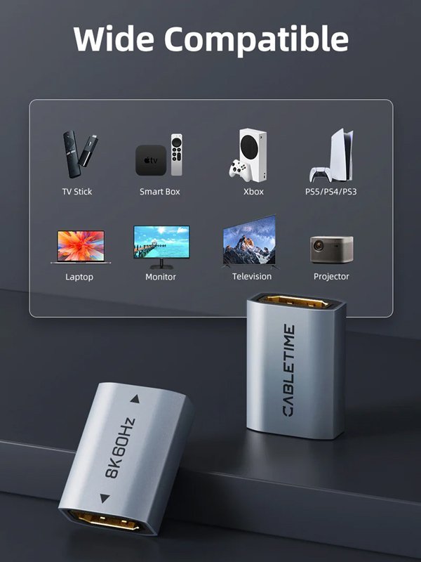 CABLETIME αντάπτορας HDMI CT-HEF8K-AG, 8K/60Hz, 4K/120Hz, 48 Gbps, γκρι