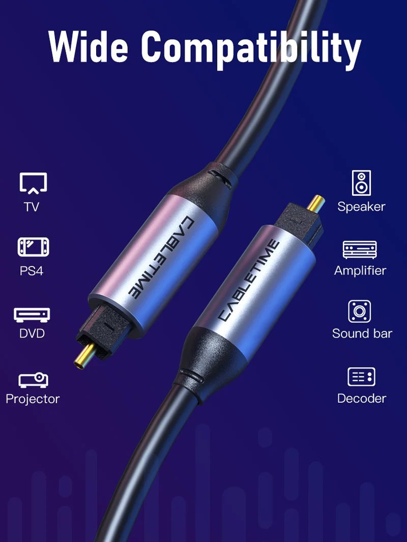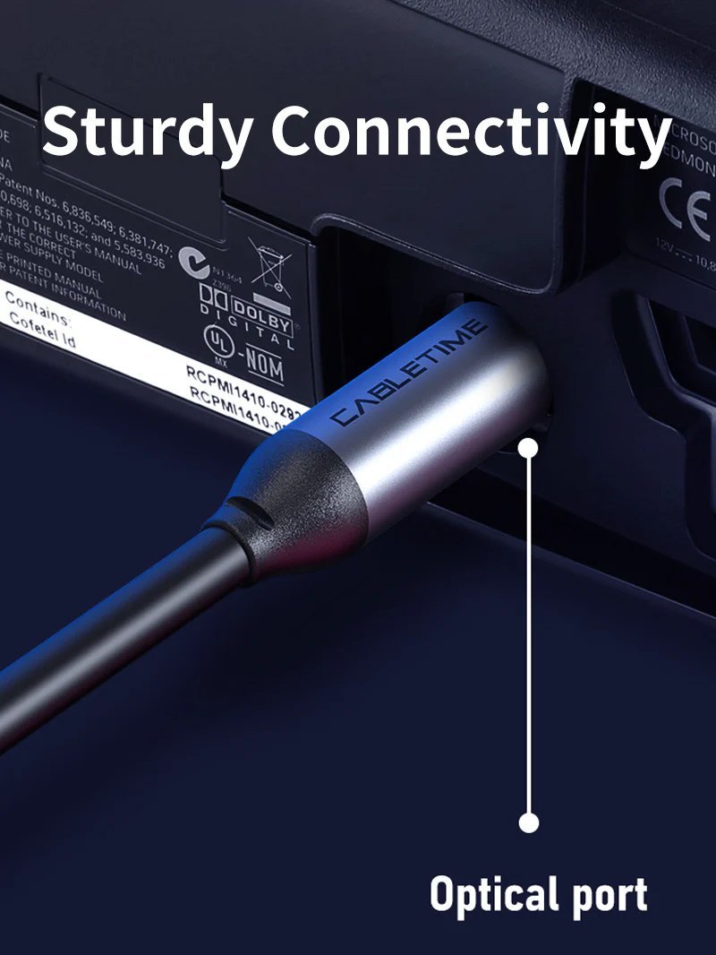 Καλώδιο toslink της Cabletime για καθαρή και υψηλής ποιότητας μεταφορά σήματος ήχου. Ιδανικό για τη σύνδεση συσκευών όπως gaming κονσόλες, HiFi συστήματα, home cinema, Blu-ray players, ενισχυτές ήχου κλπ.