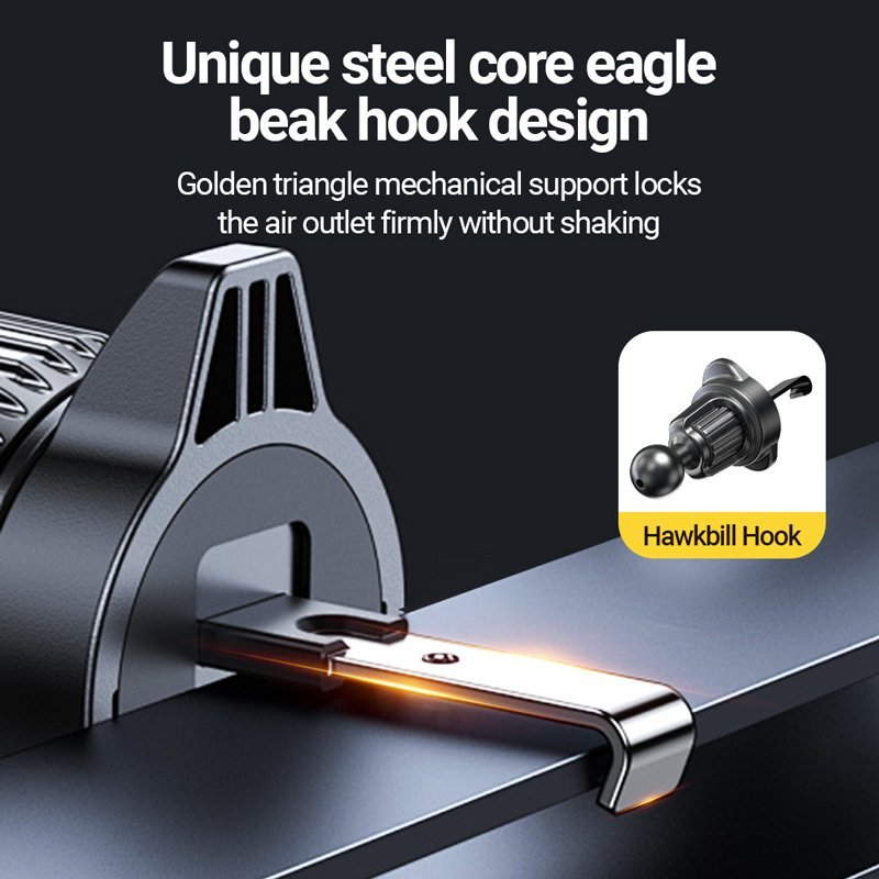 Το σύστημα τοποθέτησης της βάσης διαθέτει βιδωτό άγκιστρο για απόλυτη εφαρμογή στους αεραγωγούς ενώ τα πτερύγια που ασφαλίζεται το smartphone είναι επενδυμένα από αντιολισθητικό, μαλακό υλικό.