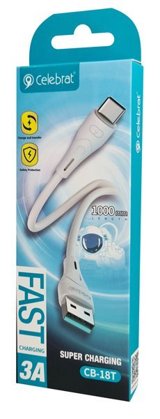 CELEBRAT καλώδιο USB-C σε USB CB-18T, 3A, 480Mbps, 1m, λευκό