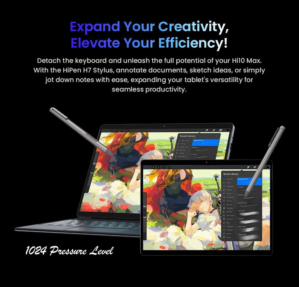 Εκτός από tablet, το Hi10 Max μπορεί να λειτουργήσει και ως μίνι laptop, καθώς συνοδεύεται από αποσπώμενο πληκτρολόγιο και θήκη με kickstand για να εργάζεστε χωρίς να χρειάζεται να κρατάτε το tablet στα χέρια.