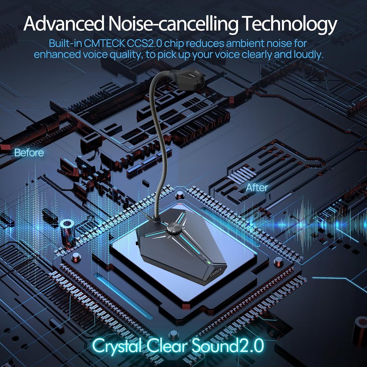 Το επιτραπέζιο μικρόφωνο της CMTECK προσφέρει καθαρή φωνητική καταγραφή με τεχνολογία μείωσης θορύβου, ιδανικό για gaming, τηλεδιασκέψεις, online μαθήματα κ.α.