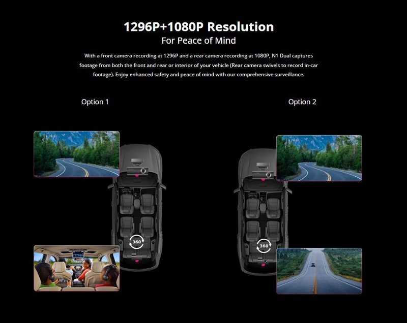 DDPAI smart σετ καμερών αυτοκινήτου N1 Dual, 1296p/1080p, WiFi