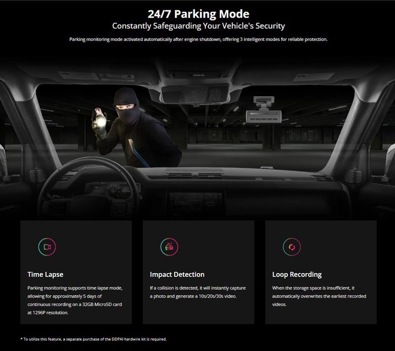 Σημείωση: Για την λειτουργία 24h parking monitoring απαιτείται η χρήση έξτρα καλωδίωσης (DDP-N1N5DUAL-KIT) η οποία πωλείται χωριστά.