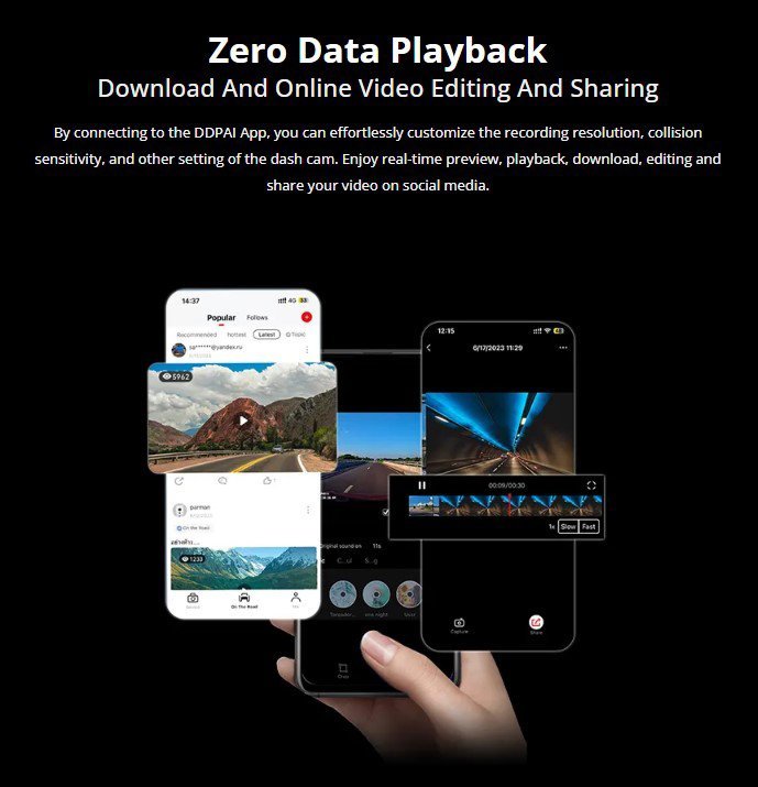 Συνδέεται με smartphone μέσω WiFi και της εφαρμογής DDPAI για τον απομακρυσμένο χειρισμό της από το smartphone.