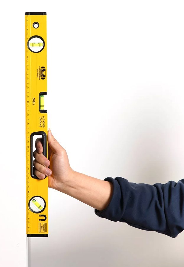 Αλφάδι αλουμινίου Deli με 3 μάτια οριζόντιο, κάθετο και γωνιακό 45° και χάρακα. Διαθέτει μαγνήτη βάση για δυνατό κράτημα σε μεταλλικές επιφάνειες και χειρολαβή για άνετη εργασία.