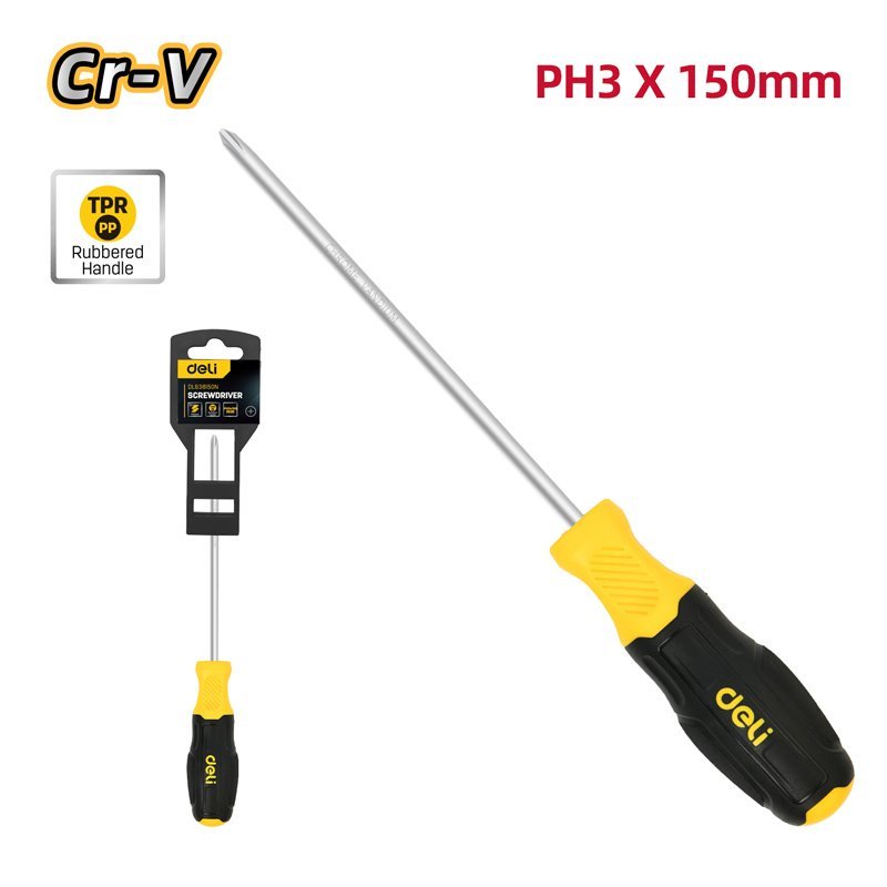 DELI κατσαβίδι σταυρωτό DL638150N με αντιολισθητική λαβή, μαγνητικό, PH3x150mm